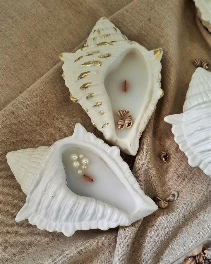 شمع داخلی پارافین با دو طرح کارشده صدف و مروارید
