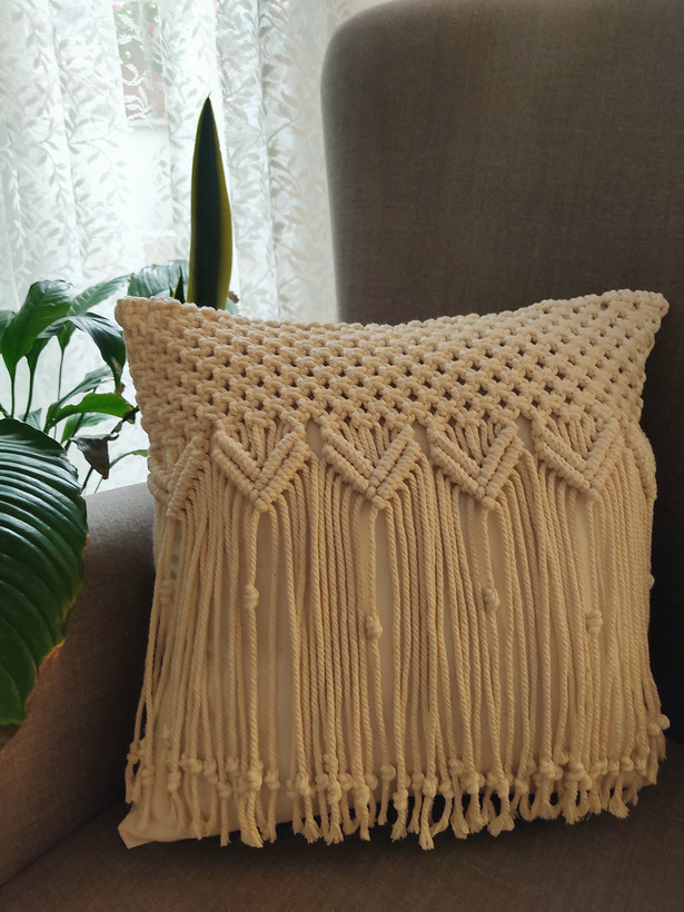 روکش کوسن مکرومه بافته شده از نخ پنبه اعلا و در ابعاد 40 در 40 نمادی از طبیعت و حس خوب می باشد .