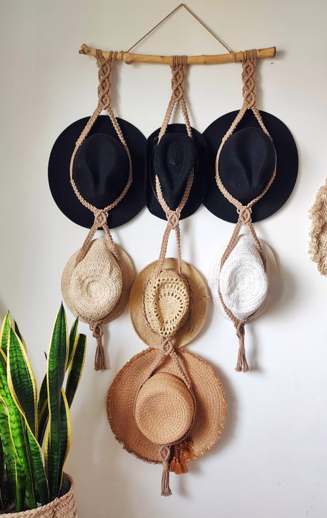 آویز کلاه مکرومه یه محصول خوب و پر کاربرد برای قرار گیری کلاه های سرگردون میتونه باشه