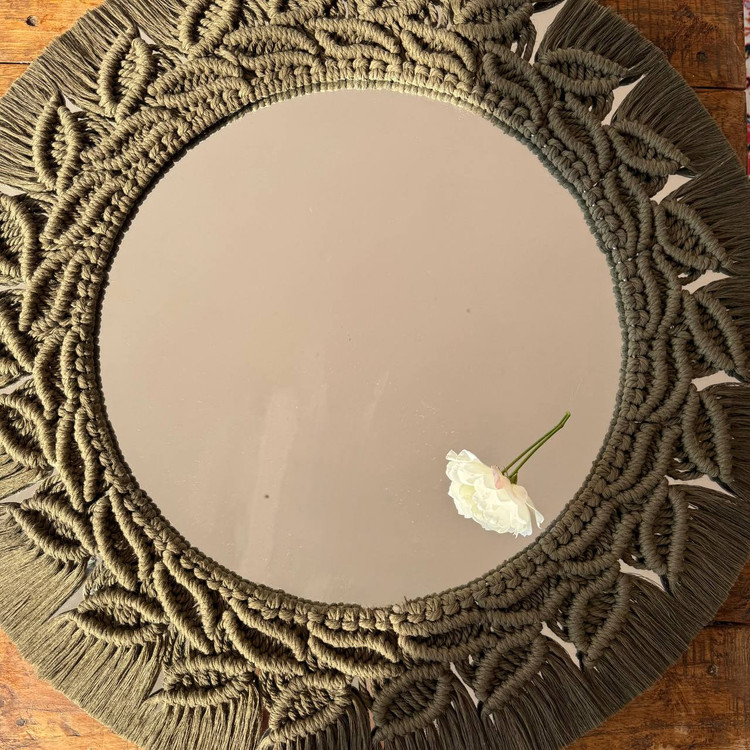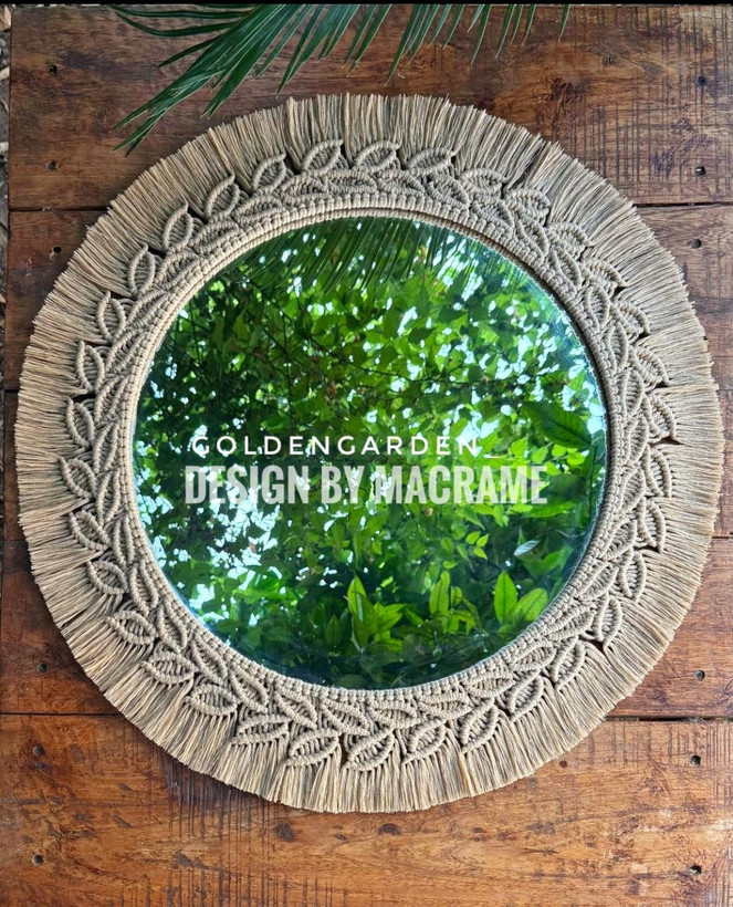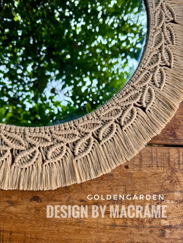 آینه مکرومه مدل برگین در قطرهای 40, 50 ,60 و در رنگهای شیری و کرم نسکافه ای قابل سفارش میباشد .