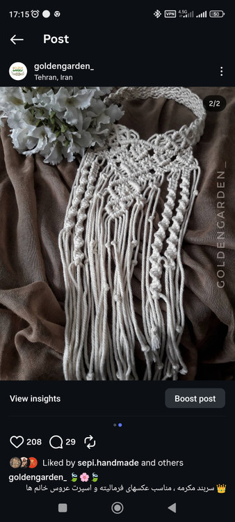 سربند مکرومه بافته شده از جنس نخ پنبه با ظرافت هر چه تمام تر مناسب مجالس و همچنین عکسهای فرمالیته ی مراسم های شما میباشد