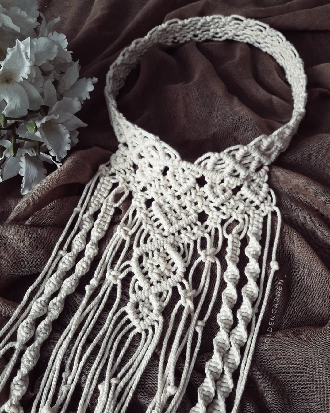 سربند مکرومه بافته شده از جنس نخ پنبه با ظرافت هر چه تمام تر مناسب مجالس و همچنین عکسهای فرمالیته ی مراسم های شما میباشد