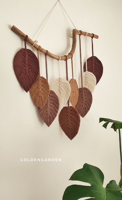 دیوارکوب ۹ برگ مکرومه در ترکیب رنگهای جذاب پاییزی