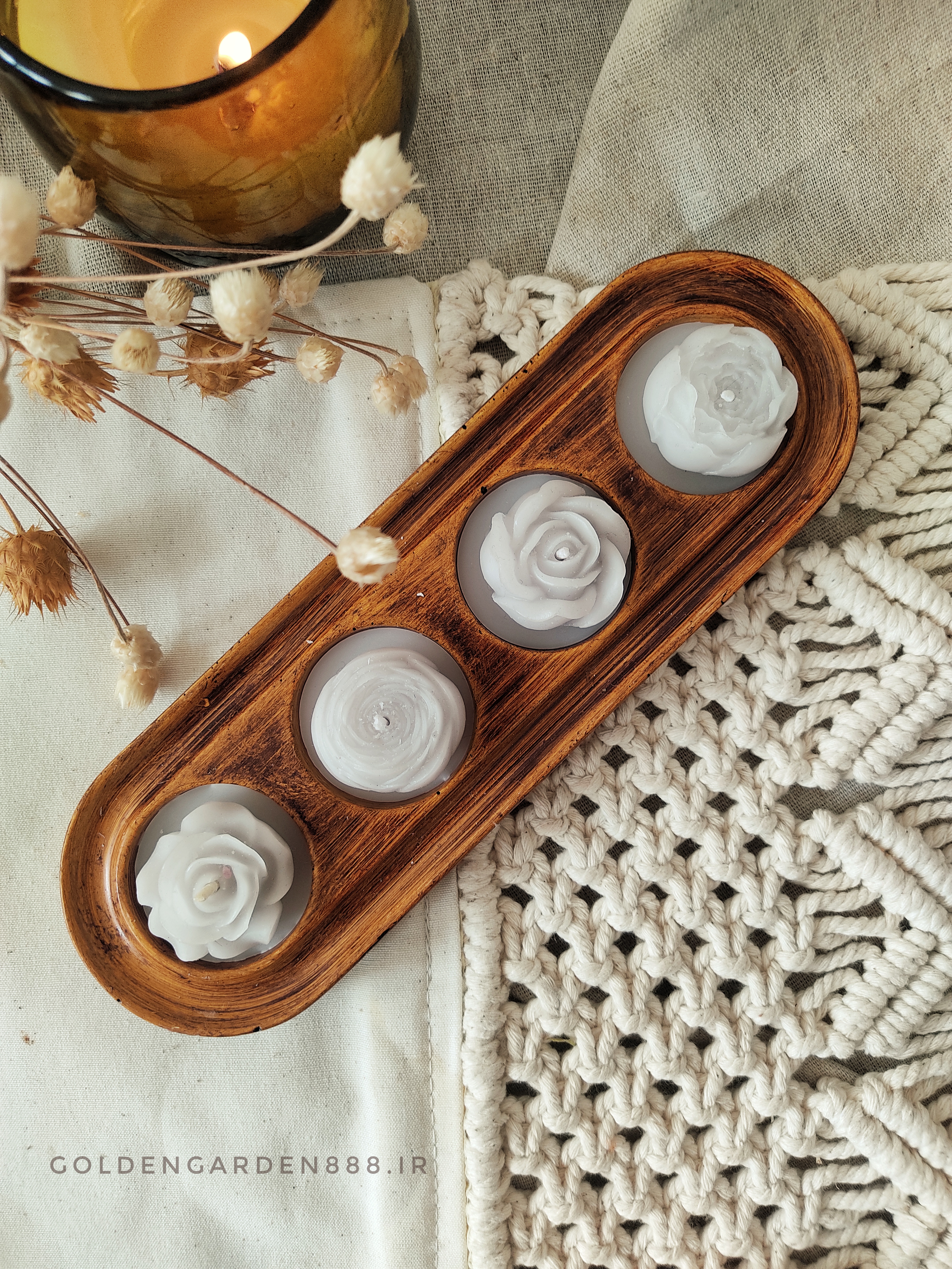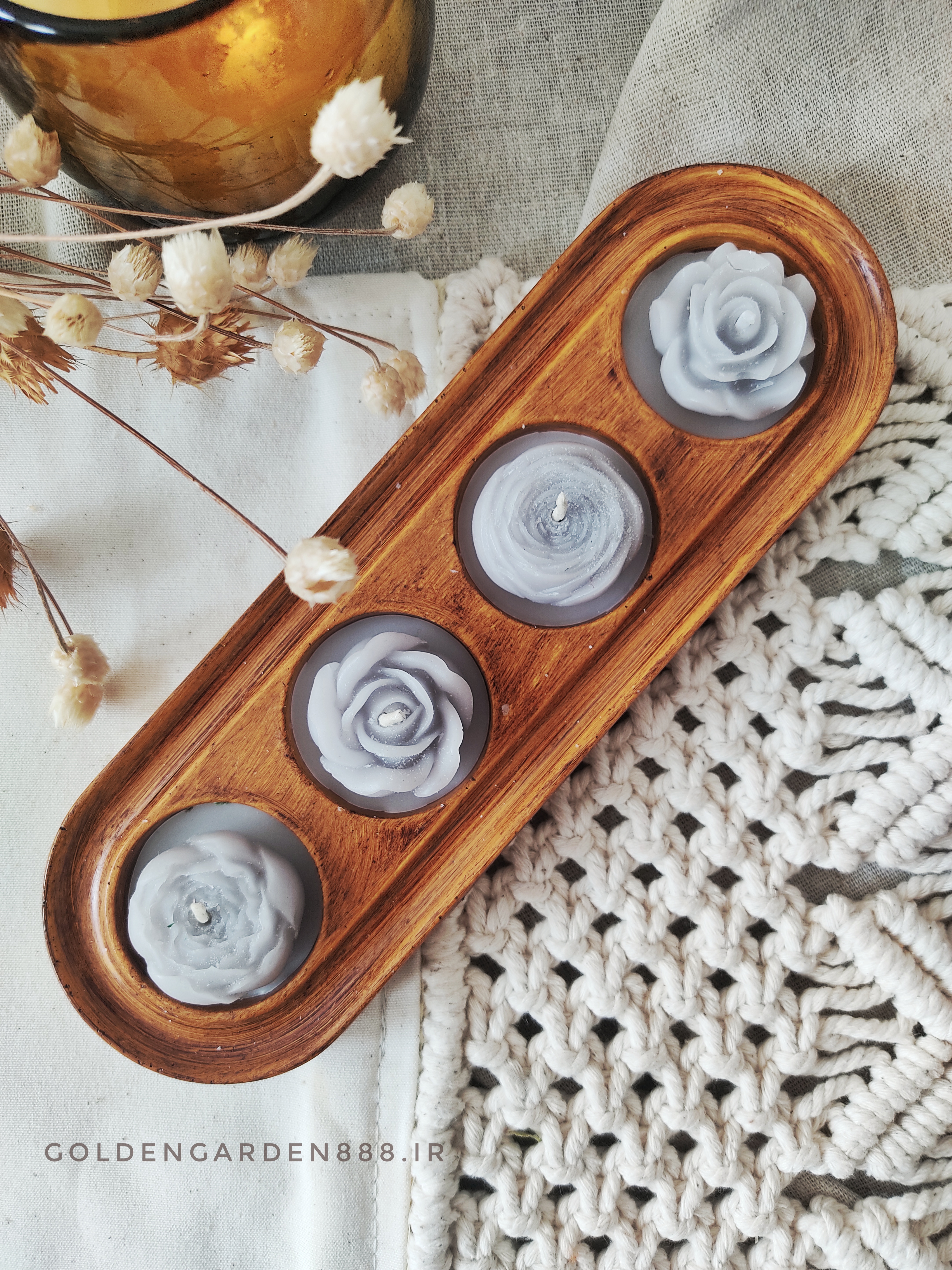شمع های دست ساز گل با پایه ی سنگ مصنوعی گزینه ای مناسب برای دکور کردن فضا و یا هدیه میباشد.