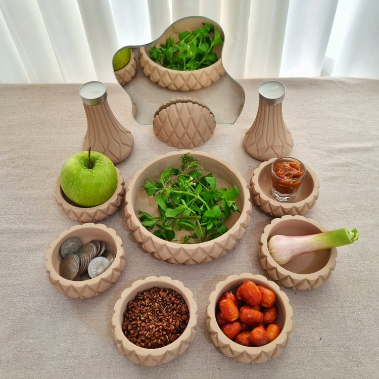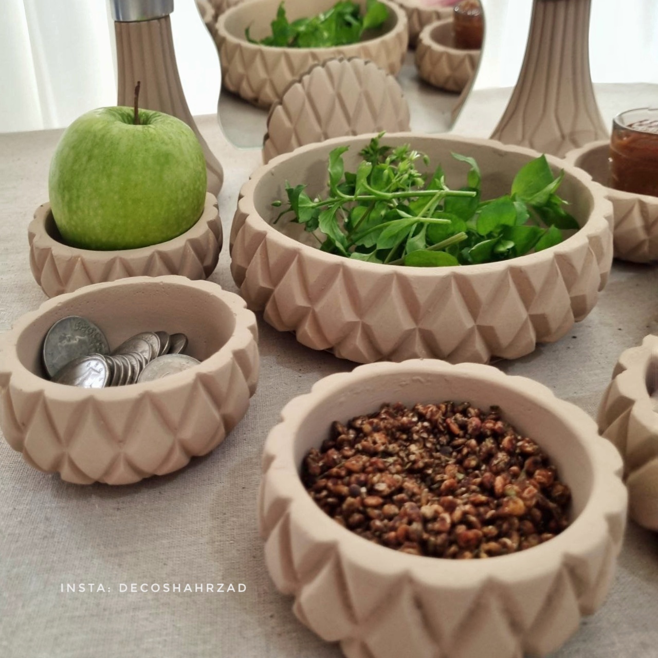 هفت سین مدل لوزی شامل ۶ظرف سین و یک ظرف سبزه،